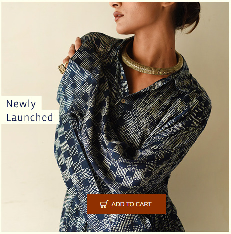 Bagru is an important centre of hand-block printing and though it originally produced textiles for the local market, today it caters to the international and the export markets. Bagru prints are done on black, brown, beige, cream and red backgrounds. Shades of blue with much use of indigo blue dyeing processes are a characteristic of this centre. For the purpose of creating motifs printers use various natural objects like neem leaves, Rose petals, chilli, and dhaniya ki bel (coriander sprig). These motifs have changed over the time. Traditionally, ‘Bagru Motifs‘ are bolder and more geometrical in nature. Bagru prints are used for making kurtas, shirts, quilts, bed sheets etc.