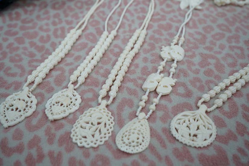 Due to the delicate nature of bone, the carved products require careful handling, as they can break if dropped.