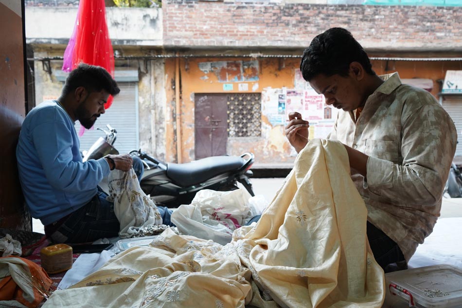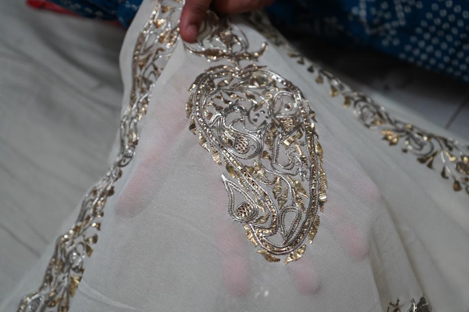 The artisans are significantly underpaid, and sometimes larger companies do not compensate them fairly. For instance, they may receive as little as ₹10 for executing 100 danna (fardi ka kaam) on a piece of fabric, while the same handcrafted work is sold in the market at much higher prices. Additionally, the rising cost of silver has further impacted the craft, increasing material expenses and making it even less economically feasible for artisans.