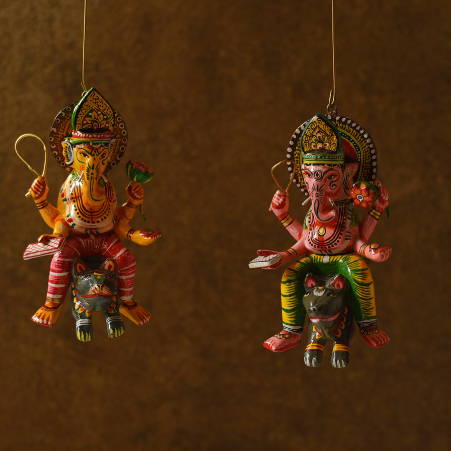The range of products in this category is extensive and diverse. It includes figures such as the ten-headed Ravana, idols of Lord Ganesha, Goddess Durga, and Lord Hanuman, along with characters from the Mahabharata. These religious figures vary greatly in size, ranging from small pieces of about an inch to larger creations that can reach up to six feet in height. Larger pieces are produced in smaller quantities due to the complexity and effort involved. Being lightweight, artisans often add hooks or springs, allowing these pieces to be hung or displayed easily.