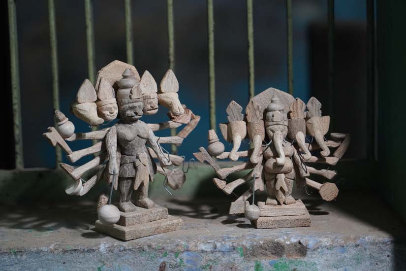 Apart from miniature carving and painting, the artisan community also carries a deep understanding of iconography and the significance of colours in depicting religious characters, which are represented with great care. Within the community, men are generally involved in wood carving, while women contribute by painting and decorating the toys. These products are commonly sold at fairs and festivals and are especially popular among tourists.