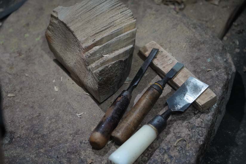 Neem wood- used as a base while carving the wood