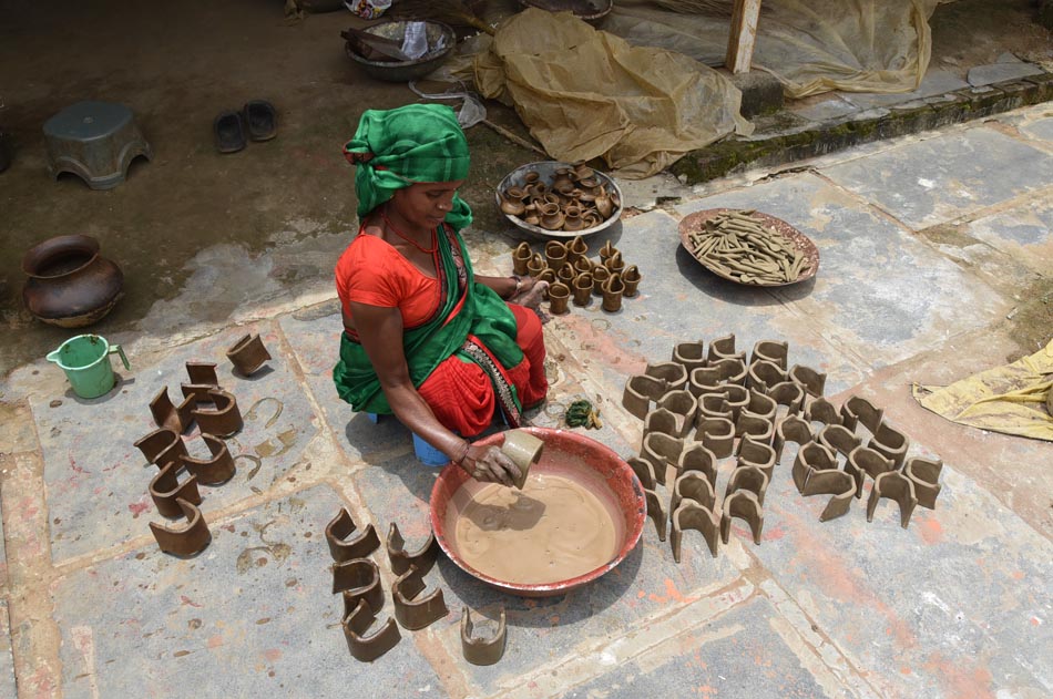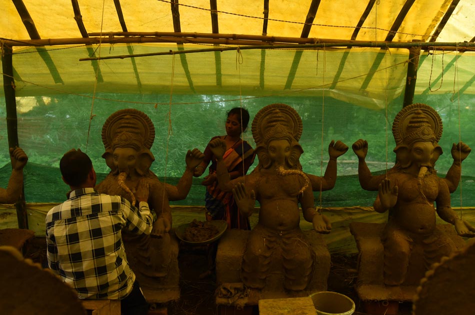 A visit to a contemporary artisan’s workshop reveals that today’s potters also create decorative objects for home décor, including lamps and tribal and animal figurines. While toys were not commonly produced by earlier artisans, contemporary makers have begun designing them to access new markets and improve their livelihoods. During Ganesh Puja, many artisans can also be seen engaged in making life-sized idols of Lord Ganesha.