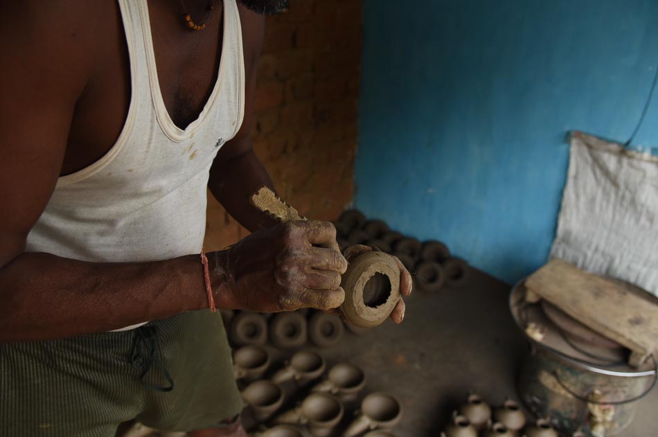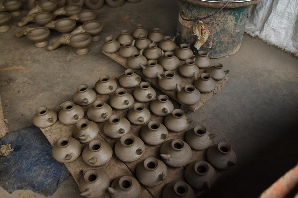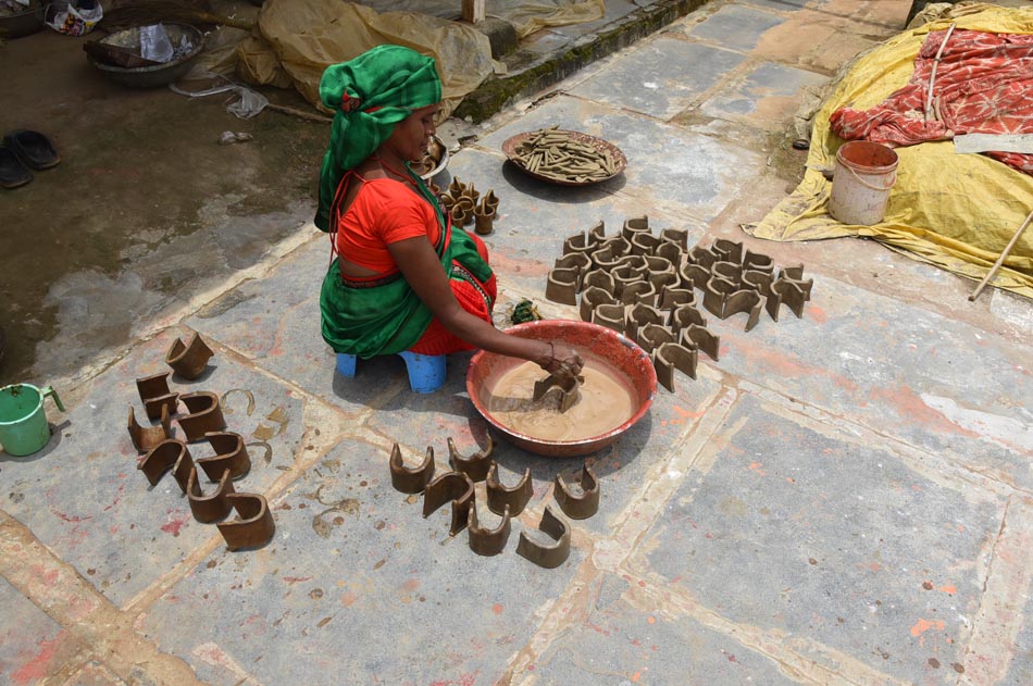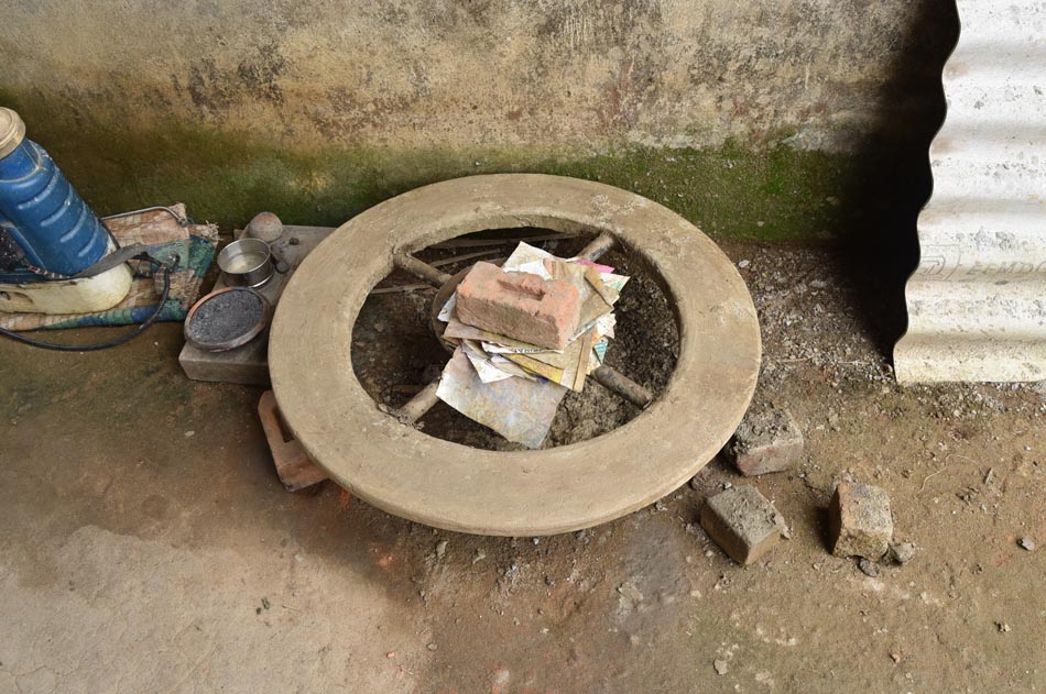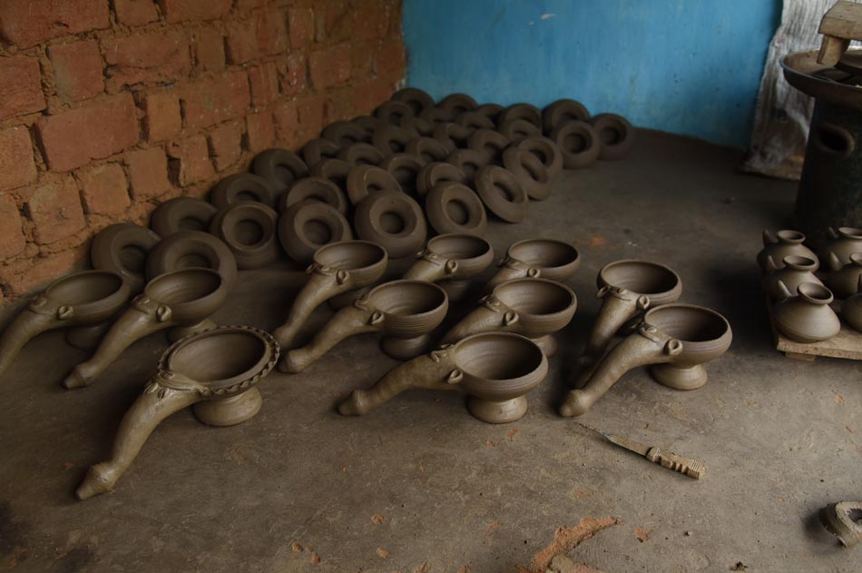 Cow dung cakes and wood – Used as fuel for firing the kiln.
