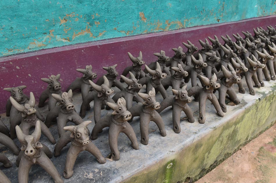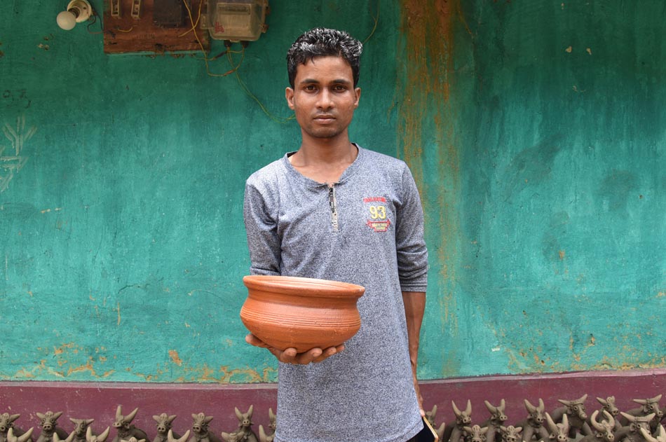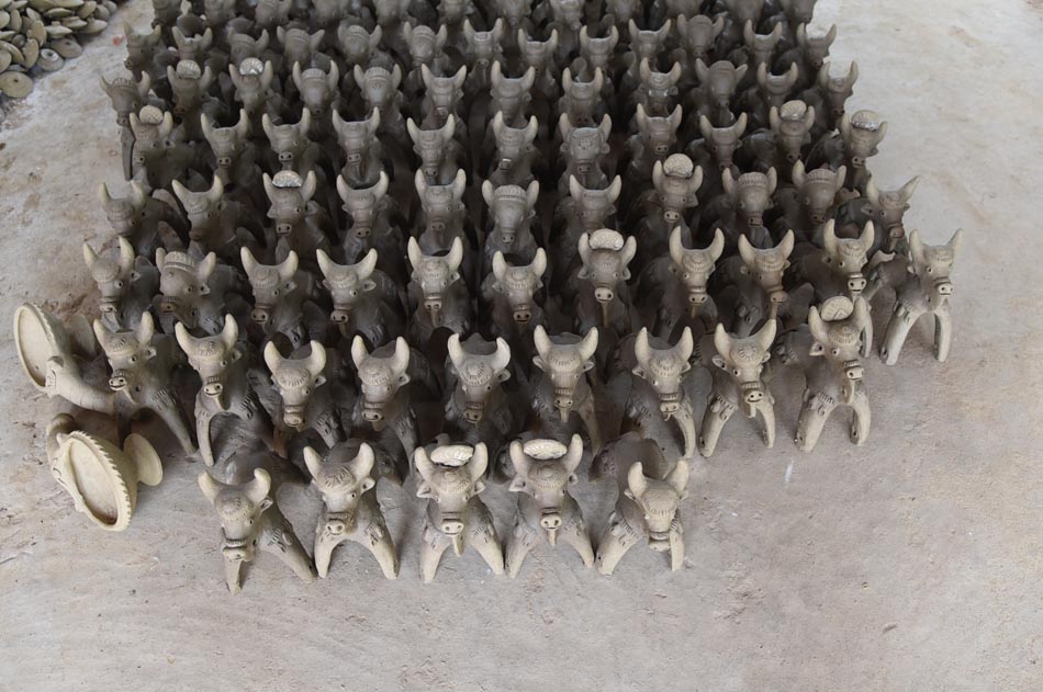 Many local rituals and festivals are inconceivable without the involvement of clay artisans. For instance, during the Pola festival, artisans create pola toys for children. After the worship of Beda Dev, miniature clay kitchen utensils are made for girls, while bulls (pora) are crafted for boys. Children play with clay bulls fitted with wheels made of clay or wood. Girls enact everyday domestic rituals by cooking and celebrating using these small clay utensils, while boys are seen running around with their bulls. In the evening, children take the pora to the fields and ritually break it, a practice known as Pora Patkana.