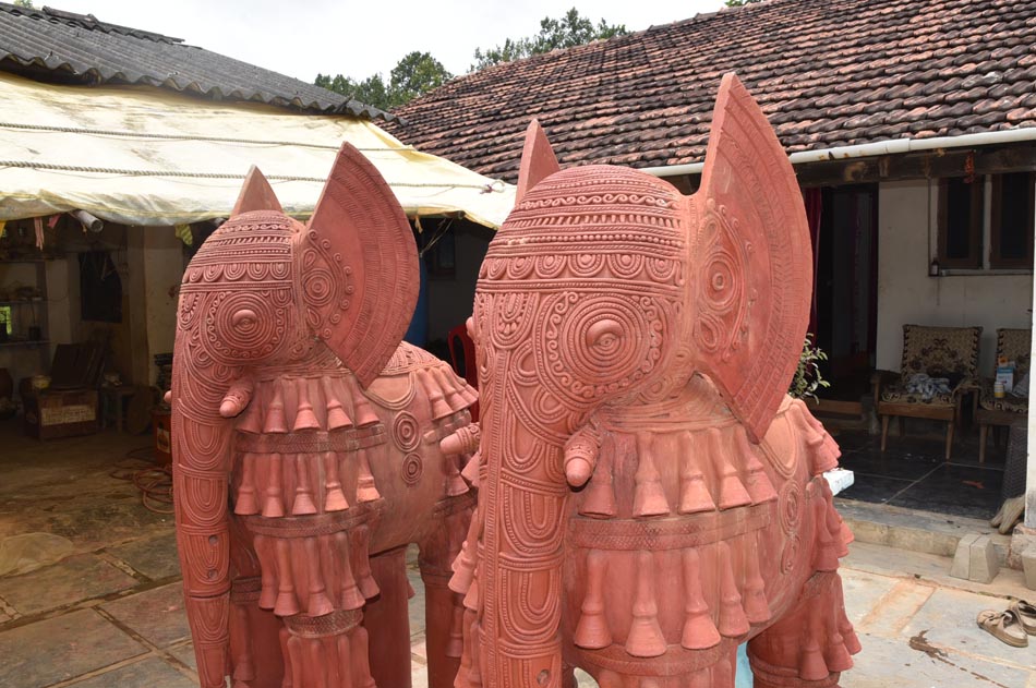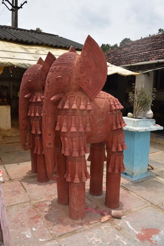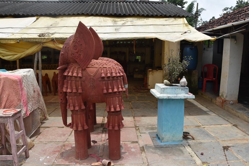 For larger sculptures, the artisans work in parts. Different sections of the body are made separately and later joined to form the final structure. These individual components also undergo specialized processes. For example, to create an elephant’s leg, artisans first form a cylindrical shape on the wheel and later decorate the surface using small clay pipes and spherical elements. This stage requires a high level of precision, as all parts must fit perfectly and remain aligned after firing.