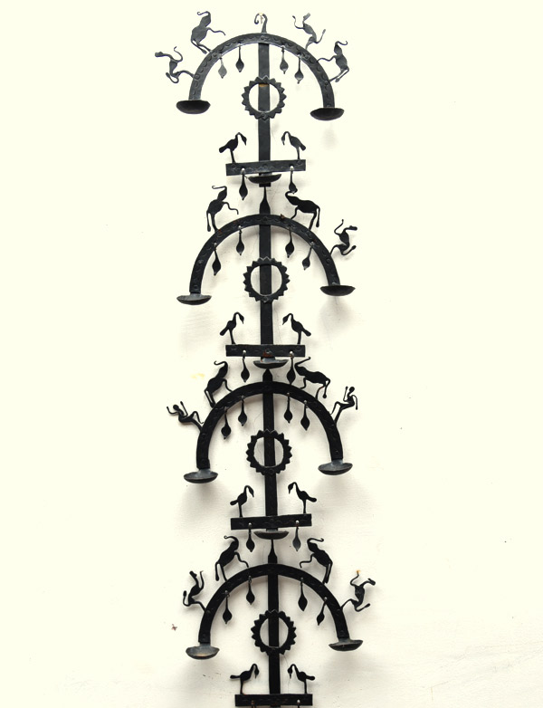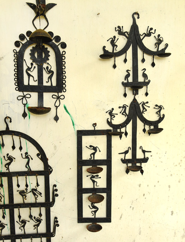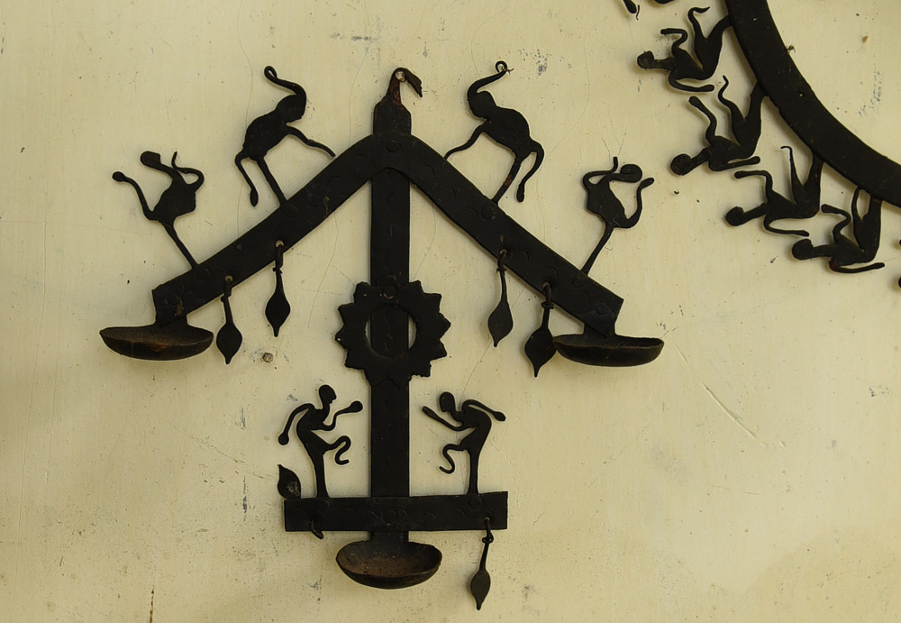 In earlier days, Lohar or Agariya artisans also made kitchen tools such as bela (for carrying water), musal (for pounding grains into powder), knives, tawa, and many others. Some objects are made specifically for rituals and festivals, for instance, weddings are considered incomplete without sooth diya, laman diya, or sufli diya. Religious objects like the trishool are made for Devi Madiya (village shrines). Many musical instruments such as chitkoli, gujri barga, mandar, mandri, muhri, and tidbudi are also crafted from iron.