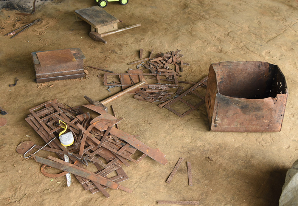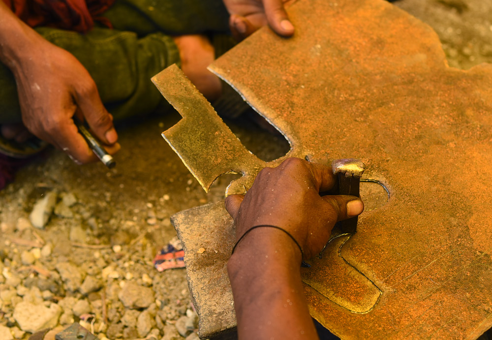 Iron – Artisans use different types of iron sheets, rods, and other scrap materials, which they buy from the local market.