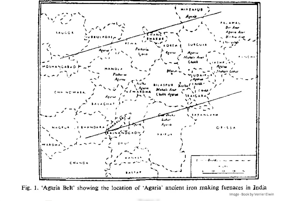The knowledge of iron extraction and use spread widely, from Madhya Pradesh to Chhattisgarh and Odisha. The anthropologist Verrier Elwin, in his writings, vividly described what he called the Agariya belt. He noted, “Just as rats live in their holes and come to the surface sometimes, so the Tohastir lives deep in the earth and comes burrowing his way to the surface, and we find the pit near the iron holes.”
