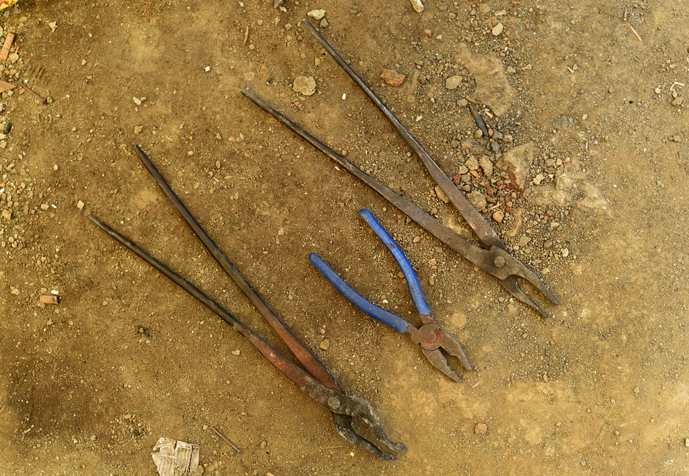 Chimta (Tonga) – A traditional tool used to hold the metal when it is heated in the fire. It also helps artisans handle the hot iron safely while hammering or shaping.